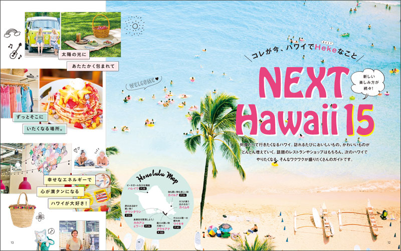 本誌は、ハワイ通やハワイ在住の方のクチコミをふんだんに取り入れ、「新しい」をキーワードに、初心者でもリピーターでも楽しめる過ごし方をご紹介しています。旬のスポットのフォトジェニックな景色を豊富に掲載し、旅のイメージが膨らむ誌面を構成しました。