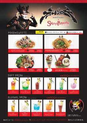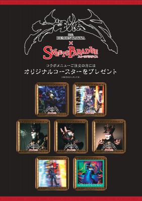 このたび井上商事株式会社(本社:大阪市 代表取締役:井上敬策)は、人間界での平和なひとときを提供しているバイキングレストラン「スイーツパラダイス」において、悪魔教教祖であられるデーモン閣下の5年ぶりのソロアルバム「EXISTENCE」発表を祝して、悪魔に魂を売り渡します! 今回は東京・池袋サンシャインシティアルパ1Fにある「トラットリアパラディーゾ」にて、本年3月18日(土)から4月9日(日)までの期間限定で、オリジナル悪魔のコラボメニューをご提供します。(期間限定です。。。)
