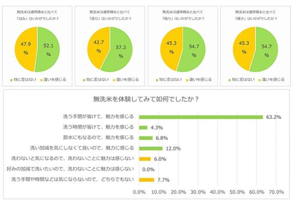 全体としては、洗う手間が省けて、魅力を感じると答えた方が 60%以上を占めております。一方で、インタビューでは、通常精米のようには洗わないものの、1回~2回程度、水で流して軽く洗っている方が多い結果となっています。通常精米よりは洗う手間が省けて魅力に感じているものの、全く洗わずにそのまま炊いているのでは無く、軽く水で流してから炊いていることが見受けられる結果となっています。