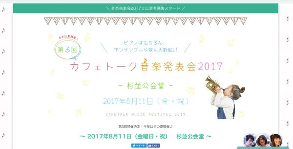 ▽「第3回 カフェトーク音楽発表会2017」開催概要・参加募集ページ