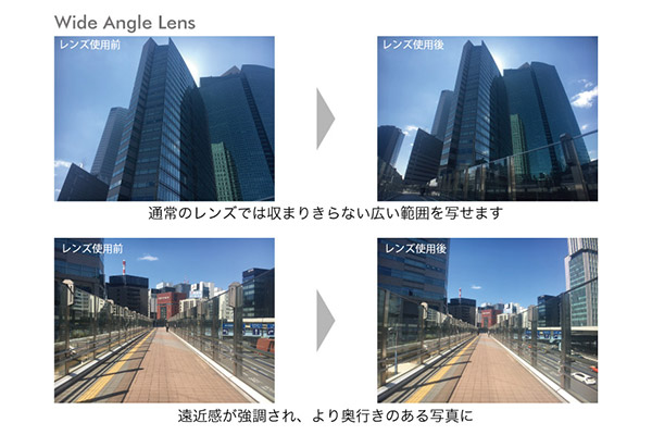 広角レンズは通常のレンズでは収まりきらない広い範囲を写せるほか、遠近感を強調した撮影が可能です。より奥行きのある壮大な風景や、そびえ立つような迫力ある建物など、ダイナミックな写真・映像を撮ることができます。
