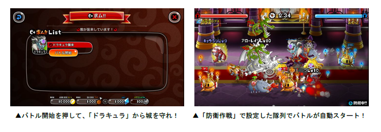 タップすると「防衛作戦」を使用して「ドラキュラ」を自動で迎え撃ちます。襲来イベントに敗北、