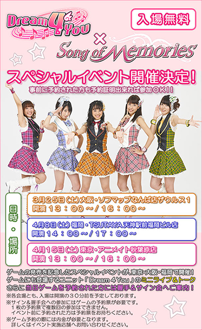 ◆Dream4You ×Songof Memoriesスペシャルイベント開催決定!