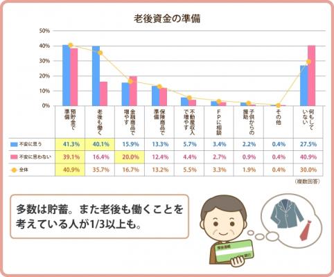 一方で、不安に思わない方は、約半数もの人が何もしていないと答えており、準備が潤沢なために不安に思っていないのではなく、老後の資金準備の意識自体が薄いことがわかる。