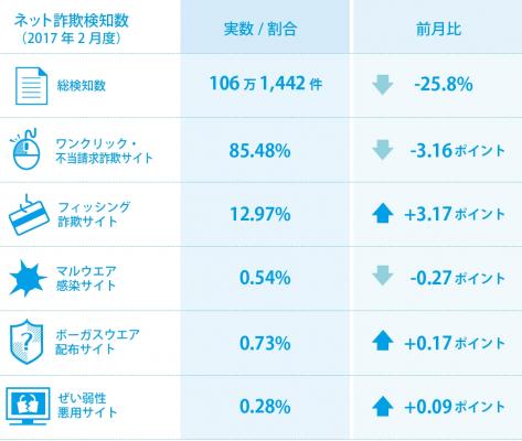 BBソフトサービス(BBSS)の「Internet SagiWallTM(インターネットサギウォール)」で検知したデータを基にした、2017年2月度のインターネット詐欺リポートです。