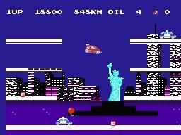 【作品情報】1985年にFCで発売されたアクションゲーム。少女クラリスが運転する車を操作し、世界各国を巡る。横スクロールする画面の足場を全て塗るとステージクリアとなる。