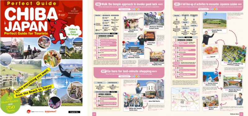 2020年の東京オリンピック・パラリンピックの競技開催予定地でもある千葉県からの依頼により、今後、益々増加が予想される東南アジア等を中心とした観光客を県内観光地に誘致することを目的にした外国人観光客向けの千葉県周遊ガイド「CHIBA JAPAN Perfect Guide for Tourists」を制作しました(以下、周遊ガイド)。周遊ガイドでは、外国人観光客が多く往来している東京、成田空港間を起点として県内を周遊するルートを紹介するガイドブック、プロモーションビデオを制作し、それを国内配布はもちろん、訪日前の海外で広くプロモーションするためにDiGJAPAN!※のプラットフォームを活用します。