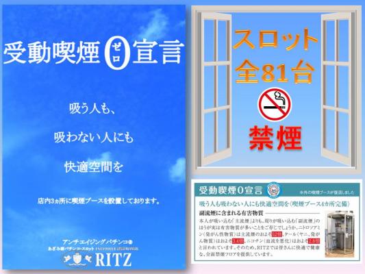 タバコの煙のイメージがつきものなパチンコ店ですが、RITZはそんなイメージとはかけ離れた、空気のキレイなパチンコ&スロット店になりました。