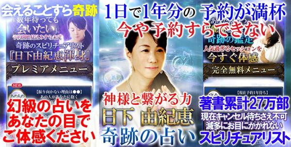 日下由紀恵の「奇跡の占い」をあなたの目でご体感ください!