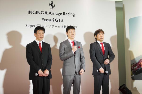 フェラーリの正規ディーラー、コーンズ・モータース株式会社(代表取締役:猿丸安人、東京都港区)は、国内最高峰のモータースポーツである“SUPER GTシリーズ”GT300クラスにフル参戦する『INGING & Arnage Racing(インギング&アルナージュレーシング)』チームの2017年チーム新体制発表会を、4月2日(日)コーンズ名古屋ショールームで開催しました。