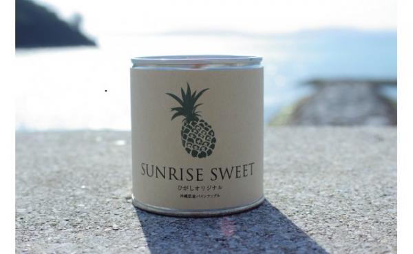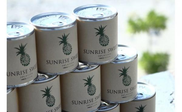 「サンライズ・スイート」は、パインアップル日本一の生産量を誇る東村が、生食のパインの出荷時期を終えた10月以降もおいしいパインを味わってもらおうと開発したオリジナル缶詰です。