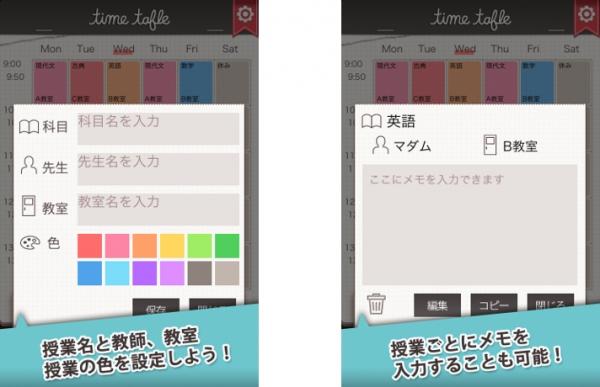 授業数や授業時間は、自分の学校のカリキュラムに合わせ設定できます。1時限ごとに設定できるので、休み時間や短縮授業も正確に反映可能。またひと目で教科と教室を確認できる仕様なので、教室の場所が分からなくなって焦る心配もありません。さらにバイトやデートの予定も入れられるので、まさに周りからひっぱりだこで予定ぎっしりな「リア充学生」におススメなアプリなんです。
