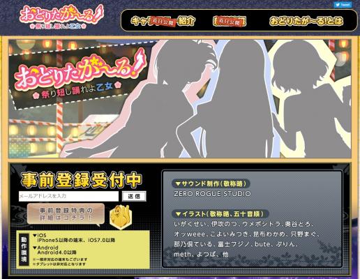 公式サイト公開と共に、事前登録及び公式Twitterの開始と「おどりたが~る!」のゲームの概要もあわせてご紹介させて頂きます。