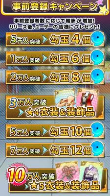 ご登録頂いた人数により、ゲームリリース後に配布される勾玉の数が増えていきますので、