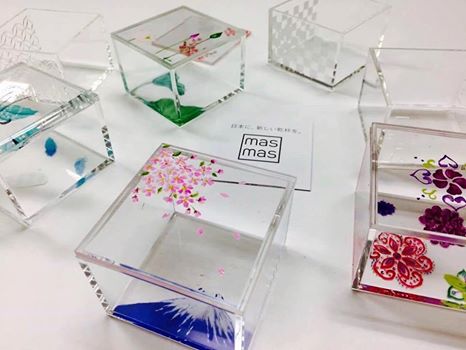 食器や小物入れにもお使いいただけるモダンなデザインのアクリル升「masmas」に、陶磁器やガラス食器などへ絵付けを行うペインティングアーティストMACHIKOさんがアクリル升にペイントを施す実演を行います。