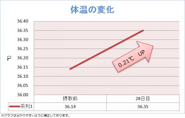+medi(プラスメディ)を運営するインクロムプラス会社は、2017年1月から3月に掛けて経済産業省の補助金を活用して、+mediが5月から販売を開始する「ON!活スープ」を使用して被験者50名が参加し28日間毎日スープを飲むことで体温上昇がおきるのかのモニター試験を実施し、0.21上昇することを確認しました。