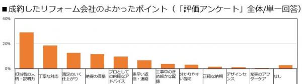 リフォーム会社と成約した理由の上位4項目は「見積り金額の納得感(66.4%)」「プラン・提案内容(65.6%)」「マナー・態度(60.8%)」「対応の早さ(59.9%)」でした。