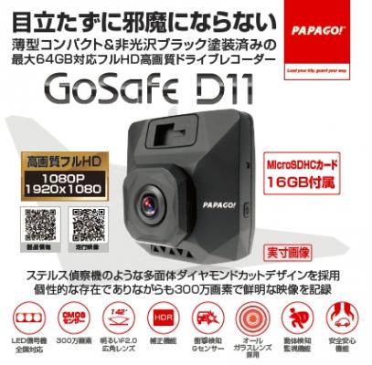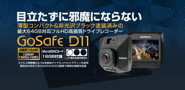 PAPAGO JAPAN株式会社は、目立たず邪魔にならないコンパクト&非光沢ブラックデザインで最大64GB対応フルHDドライブレコーダー「GoSafe D11」を2017年4月27日(木)から発売します。