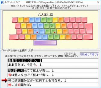 ローマ字入力とかな入力に対応し、英文の練習も行うことができます。