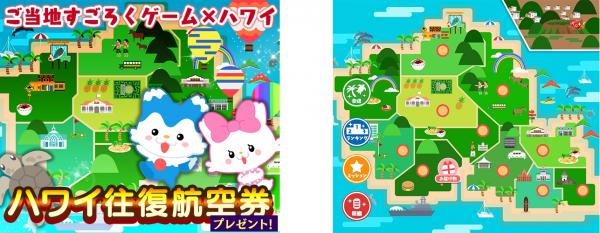 ハワイ・オアフ島ステージでは、ハワイ情報を多くのユーザーにお届けします。さらに、「ごほうび、ハワイ案。」にてハワイ旅行のご提案書を作っていただくか、ハワイ・オアフ島ステージをクリアしていただくと、抽選で、ハワイへの往復航空券が1組2名様に当たります(その他ゲーム内報酬有り)。