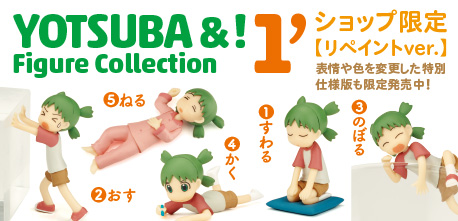 4月18日より「よつばとダンボーストア(http://store428d.com/)」にて、「よつばと!」フィギュアコレクション第2弾が発売開始された。それにあわせて同ストアでは第1弾のリペイント版も限定販売。よつばとダンボーストア別注の特別版で、店舗限定での取り扱いとなる。