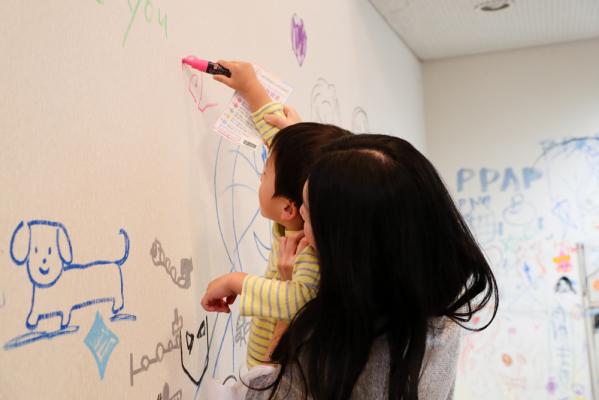 また建物内の壁をキャンバスにして自由にお絵かきができる「落書きイベント」や「働く車に乗ろう!」などの他、夜のメインイベントとして、分譲予定地内の屋外グランドで映画を上映し、星空を見ながら映画・飲食とともにその雰囲気を楽しむ“ねぶくろシネマ”(上映作品は「BIG FISH」)も実施しました。