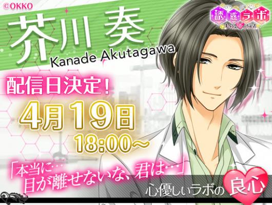 変わり者が多いラボの中では貴重な心優しき青年“芥川 奏”の本編ルートを4月19日より配信する事が決定いたしました。配信開始後にログインしていただくと、ガチャチケットとシナリオ全回復チケットをもれなくプレゼントいたします。