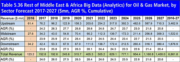 Big Data Analytics for Oil & Gas Market Report 2017-2027:Forecasts by Sector (Upstream, Midstream, Downstream), by Type (Hardware, Software, Services) and by Key National Markets, with Leading Company Profiles Plus Analysis Of Environment, Health, and Safety (EH&S), Exploration & Production (E&P), Risk Prevention, Operational Optimization, Drilling Optimization, Asset Maintenance, Production Optimization and Other Factors