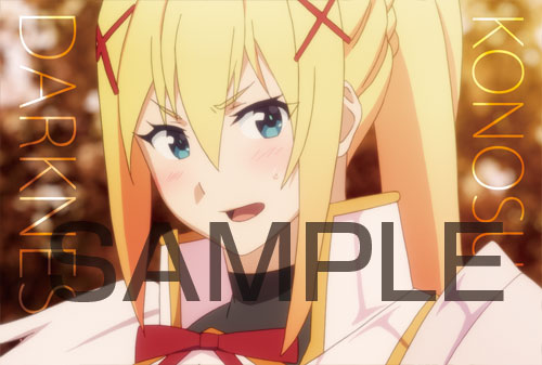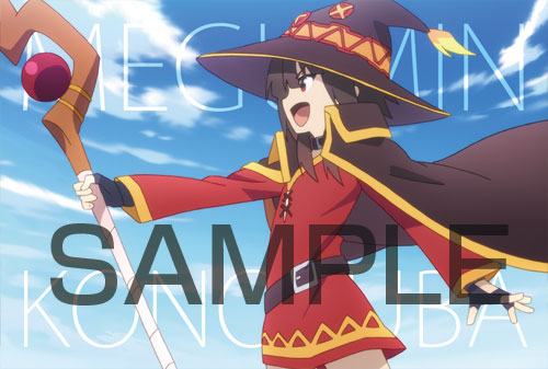 対象店舗にて『この素晴らしい世界に祝福を!』関連商品を1,000円(税抜)お買い上げ、ご予約ごとに1枚プレゼント。店頭ではお好きな絵柄を選んでいただけます。