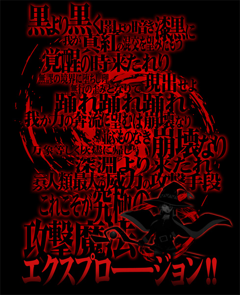 黒より黒く闇より暗い漆黒のTシャツにめぐみんの詠唱をプリント