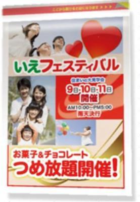 2月連休に合わせた住宅展示場の見学会案内DMでは、バレンタインに向けてチョコレート菓子の"詰め放題企画"を実施。2枚合わせになったDM上部を切り取ると手提げ型の紙袋になり、お菓子が詰め放題にできるよう設計しました。折込チラシに"詰め放題企画"を実施したことで新規見込客の多数来場に成功し、通常の同様イベントと比べ1.5倍の集客率を記録しました。(※画像)参照。