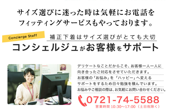購入した「脇肉キャッチャー(R)」のサイズが合わなかった場合、返品・交換を無料でスムーズに行える「フィッティングサービス」がご利用いただけます。専門スタッフの丁寧なカウンセリングや、その人に合ったサイズのご提案で、サイズにまつわる不安や、返品・交換の煩わしさを解消。補整下着を初めて購入する方にもご好評いただいています。