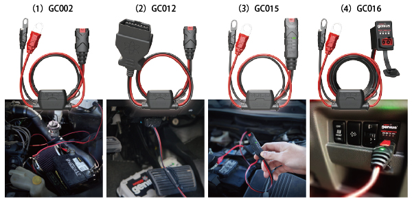バッテリーに常時接続可能な接続ケーブルです。接続部にインジケーターを搭載し、充電状況を確認することができます。