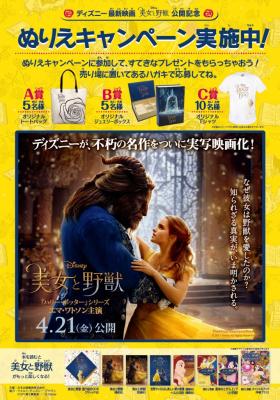 本企画はその公開を記念したキャンペーンで、フェア参加店舗に設置した応募ハガキのぬりえを塗ってご応募いただくと、抽選で20名様にディズニー映画「美女と野獣」関連の豪華賞品が当たります。当選者につきましては、キャンペーン事務局より賞品の発送を行い、発表に代えさせていただきます。