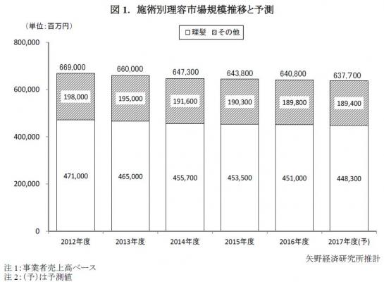◆2016年度の理美容市場規模は、前年度比99.6%の2兆1,575億円と微減