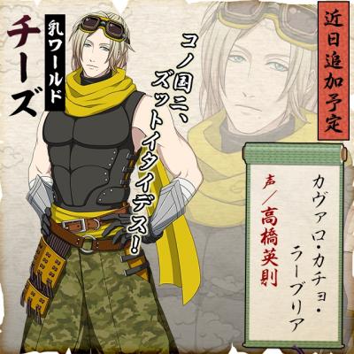 「カヴァロ・カチョ・ラーブリア」は、4月末開催予定のイベントから追加予定の新キャラクターです。明るくひょうきんで、忍者に憧れを抱いているチーズを、高橋 英則さんが演じます。