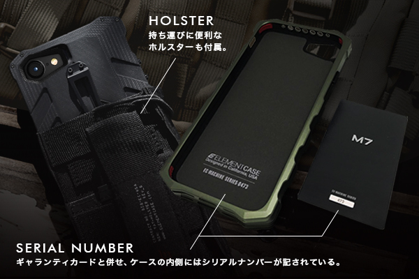 「SECTOR」や「BLACKOPS」など重厚なデザインで人気を博しているELEMENTCASEの「アドレナリンコレクション」に待望の新作が登場しました。本製品「M7」は、同ブランド史上最強とも言える、究極の強さを備えたiPhoneケース。CNC(コンピュータ数値制御)によって精密に削り出された、まるで装甲車のような攻撃的かつ大胆なフォルムは、他に類を見ないMERC X(Material Engineered Reinforced Chassis)技術の結晶とも言える仕上がりです。