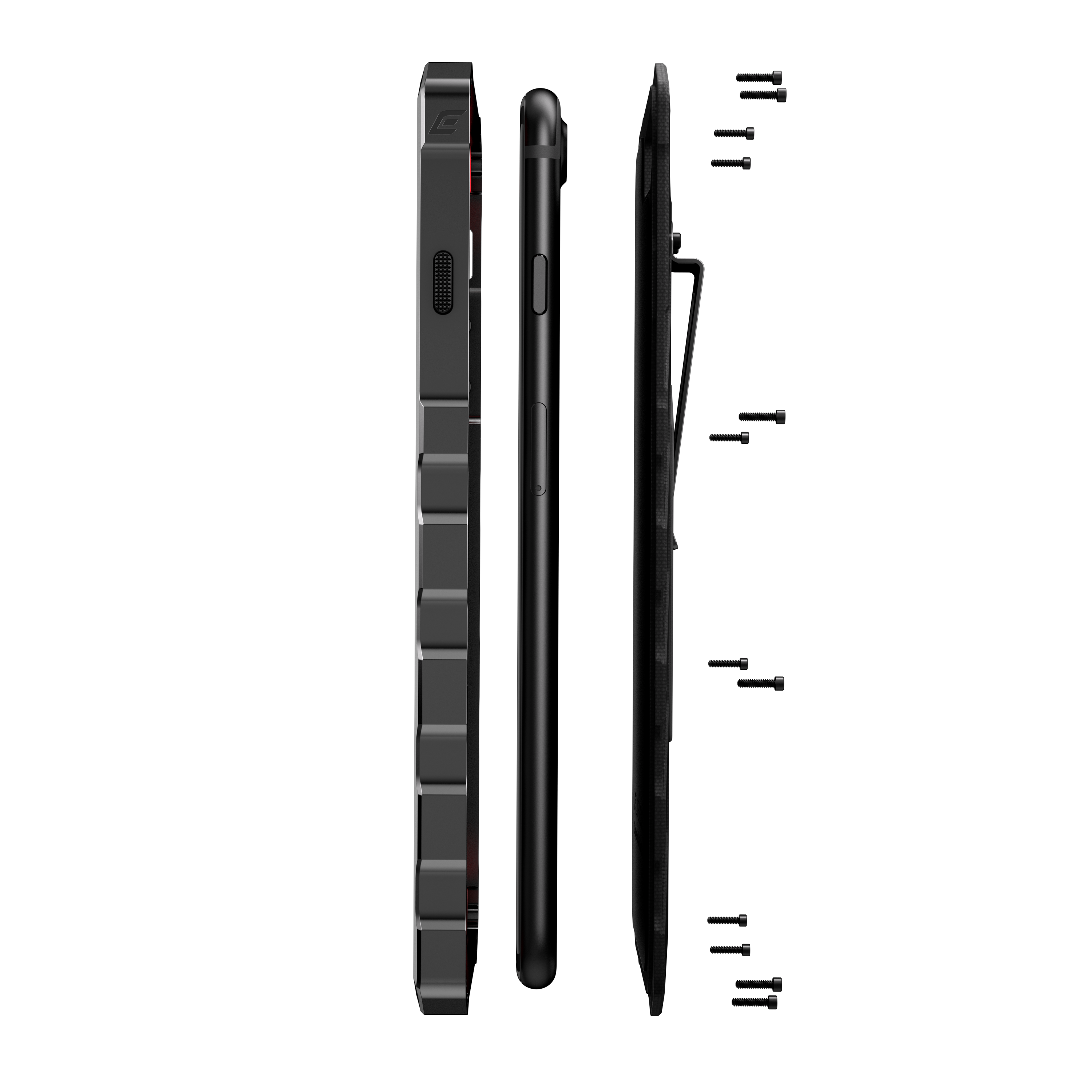 ケースの装着は付属の専用レンチでネジを取り付けるおなじみのSLS(スクリューロックシステム)。本製品では12本ものネジを使用する一手間かけた作りですが、G10プレートとアルミフレームを挟み込むだけの装着はむしろスムーズ。ケースから取り外す際もiPhone本体を傷付ける心配はありません。