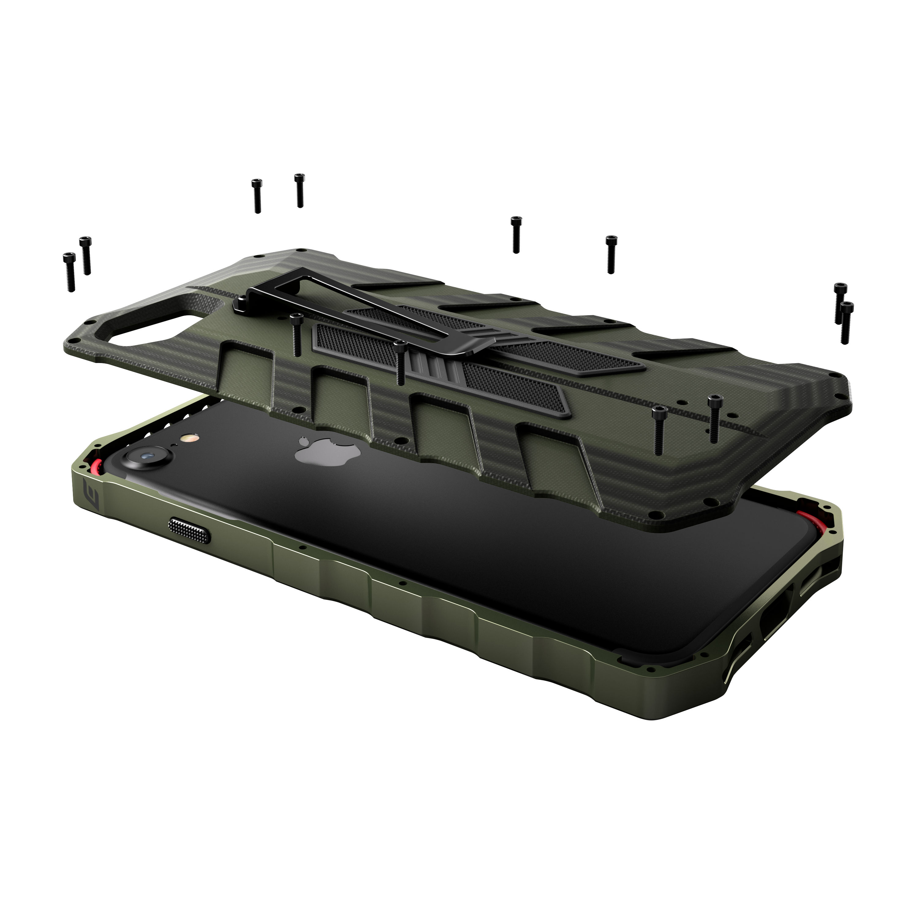 バックプレート全面には軍事グレードの高い強度を誇る「G10(※1)」素材を採用し、フレームにはアルマイト処理(陽極処理)により摩耗性&耐食性に優れた6061-T6アルミニウム(※2)を使用。マット仕上げの鋭い輝きを放つ選び抜かれたアルミとG10を融合させたシャーシは、破壊はもちろん曲げることすら困難なほどの耐久性を生み出しました。耐衝撃性能は米国の軍用規格「ミルスペック」の落下テストをクリアする折り紙付き。まさに「最強」の2文字が相応しい保護性能と言えるでしょう。
