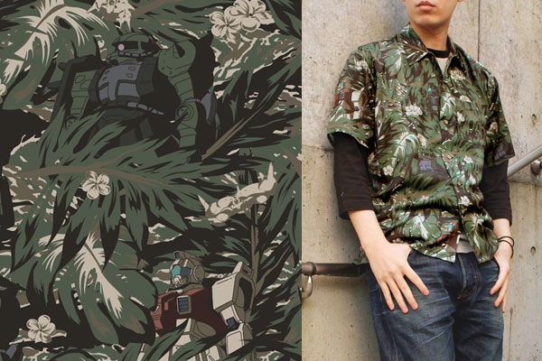 アロハ特有のデザインの中にさり気なく『機動戦士ガンダム第08MS小隊』の劇中で活躍したモビルスーツをアレンジしました。