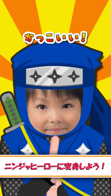 ここは、映画「ニンジャヒーロー」の撮影スタジオ。正義の味方ニンジャヒーローとなって、敵のアジトに潜入し、悪のニンジャ軍団をやっつけよう!カッコいいニンジャヒーローに変身したら、撮影開始です!まずは、お子様の顔を撮影しましょう。あっという間に、ニンジャヒーローに変身します。ご家族の皆さんもサムライやボスに変身できますので、アプリに登場することができます。簡単操作で敵ニンジャを倒していきます。お子さま向けのアプリですので、複雑なメニューや説明を省いたシンプルなデザインになっています。また、一定の条件でクリアするとトロフィーや新しいニンジャ衣装がもらえます。トロフィーを全部集めて伝説のニンジャマスターを目指しましょう。