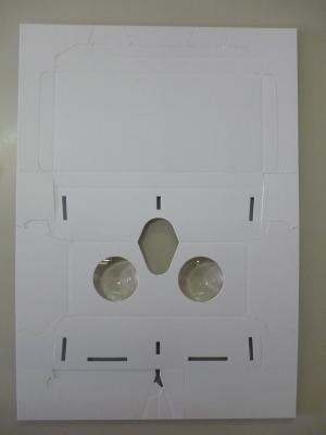 ■既に販売されている製品の多くはレンズを含む複数の部品で構成されているもので、組み立てはテーブルの上などで行う必要があり面倒でした。その場合、例えばイベント会場などで配布を行ったとしても参加者は「その場で組み立てる事が難しい」・「部品が紛失してしまった」どの問題が発生する可能性があり、配布する企業としても躊躇することがありました。