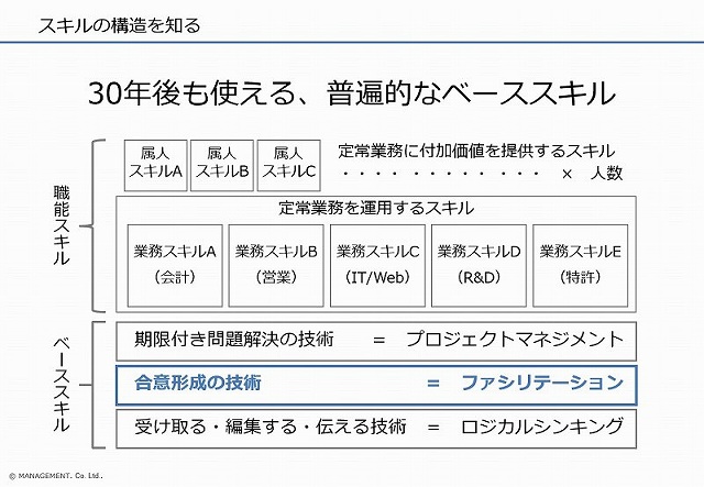 プロジェクトマネジメントを専門分野にサービスを提供する株式会社マネジメント(本社:東京都港区、代表取締役社長:音羽真東)は、今まで有料で提供してきた企業向けのベーススキル研修、考える技術(ロジカルシンキング)・合意する技術(ファシリテーション)・期限付き問題解決技術(プロジェクトマネジメント)の最新資料一式を全て無料公開することを決定しましたので、お知らせいたします。