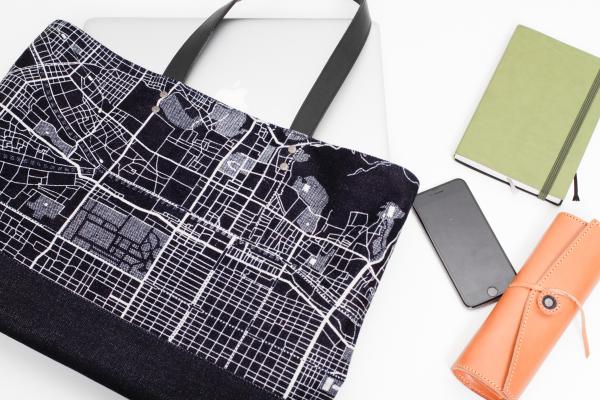 京都デニム(KYOTO DENIM)と京都の若手カバン作家・ケントハシグチ(Kento Hashiguchi)とのコラボレーション作品「京の地図柄デニムトート」が2017年5月1日(月)より販売開始となります。