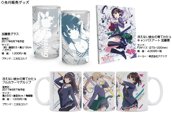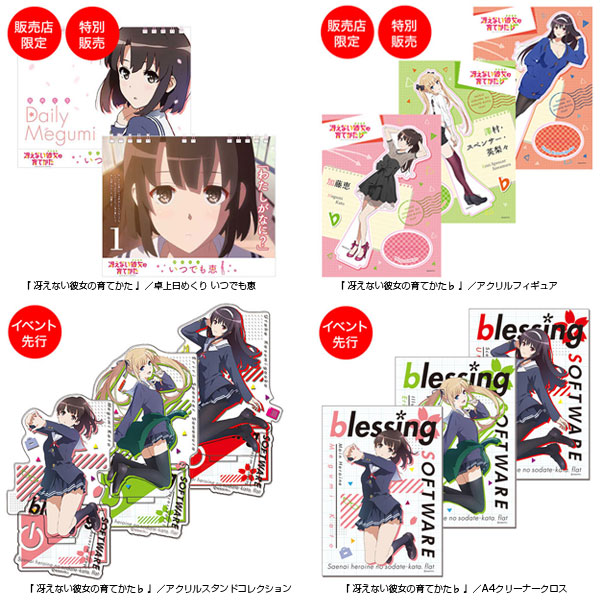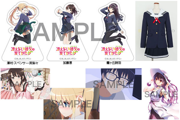 今回特別販売となる恵の「卓上日めくりカレンダー」や、キャラクターデザイン高瀬智章氏による描き下ろしイラストを使用した恵、英梨々、詩羽「アクリルフィギュア」、先行販売の「アクリルスタンドコレクション」「A4クリーナークロス」、水着姿で涼しげな恵の「グラス」、色鮮やかな「フルカラーマグカップ」「キャンバスアート」など、いち早く手に入れられるこの機会にぜひご覧くださいませ。