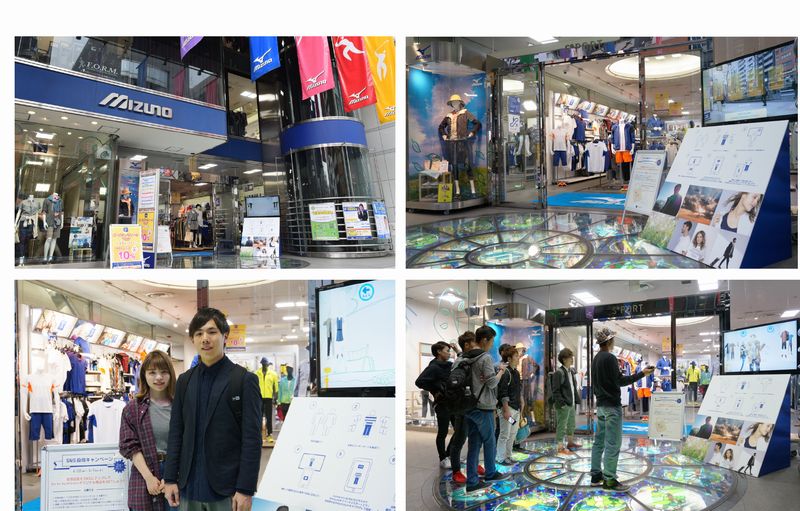 バンタンデザイン研究所デザイン学部の学生が、2017年2月発売のミズノ新商品「Go to by mizuno」とARサイネージとのコラボレーションにより、仮想試着体験ができる新しいPRイベントを企画し、2017年4月21日(金)から2017年5月7日(日)までエスポートミズノにて実施しております。対象の期間に店舗へお越し頂き、仮想試着を体験した写真をSNSにアップすることで、「Go to by mizuno」オリジナル商品が当るクジに参加可能な「SNS投稿キャンペーン」も実施しておりますので是非店頭まで足をお運びください。