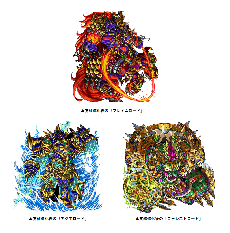 覚醒した「フレイムロード」「アクアロード」「フォレストロード」がボスモンスターとして