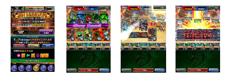 コロシアムのバトルは、5人vs 5人で1人1枚ずつカードを出して役勝負をします。より強い役を作った