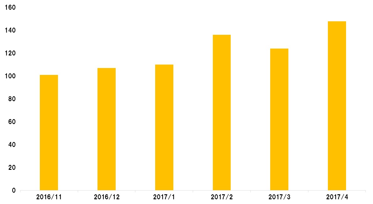 ■会員数の月推移(2016年11月1日~2017年4月30日)