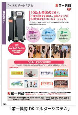 レクリエーションで活躍のカラオケや多彩な映像プログラムで介護予防サポートする「第一興商DKエルダーシステム」、NDソフトウェア株式会社の介護サポートシステム「ほのぼのmini」や「看取り支援器」「Voice fun」、離れて暮らす家族と音声メッセージで連絡がとれる介護ロボット「ここくま」、オリックス自動車のコスト削減をサポートする「中古車リ-ス」など、施設の困りごとを解決する多彩なサービスを掲載しています。